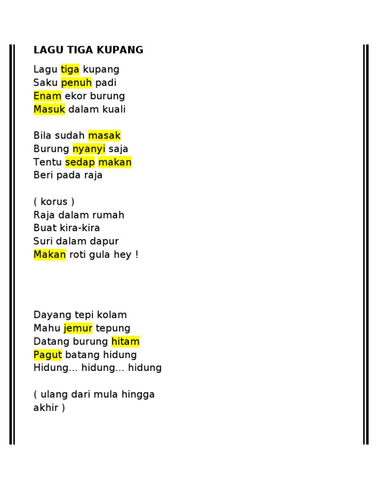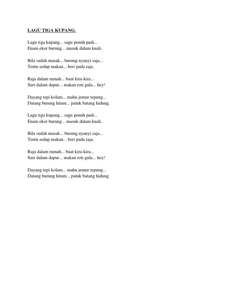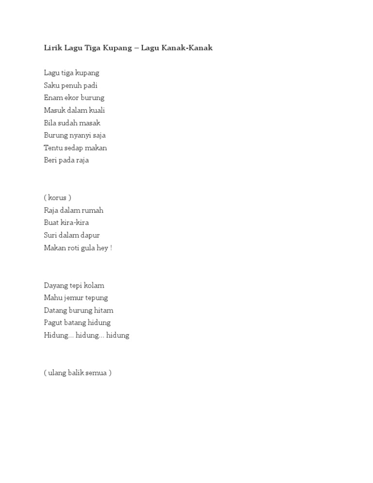 Related : Lirik Lagu Tiga Kupang / Lagu Kanak Kanak Bahasa Malaysia Lagu Tiga Kupang Youtube / 10 gambar lirik lagu terbaik lirik lagu lagu lirik..